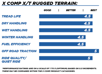 Applicable X Comp Lines with Road Hazard Warranty: X Comp M/T, X Comp X/T and X Comp A/T, X Comp H/T ASII, X Comp H/P AS1